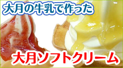 大月ソフト・・・・ 全ての原材料を地元産にこだわりぬいた「道の駅・大月」自慢のソフトクリームです。ここでしか味わうことができないオリジナルの特製ソフトクリームは地元産の牛乳を使用していて濃厚なミルクソフトがベースとなっています。 3種類のソース(イチゴ・バンカン・ひがしやま)が選べます。特製の塩麹を混ぜ込んだ塩麹ソフトも大人気!!
